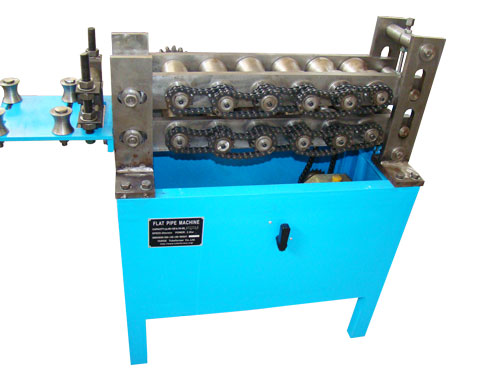 Flat pipe machine which can make the spiral corrugated duct into flat pipe when needed.